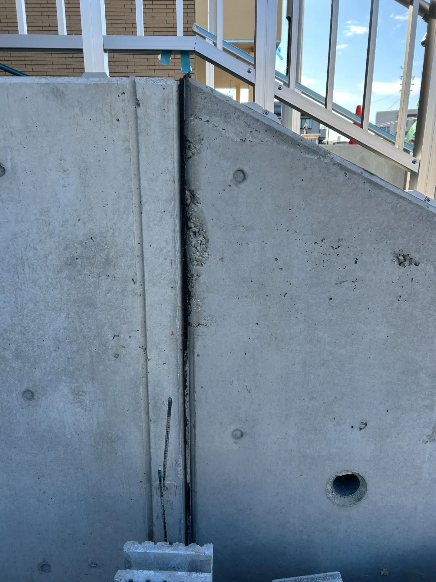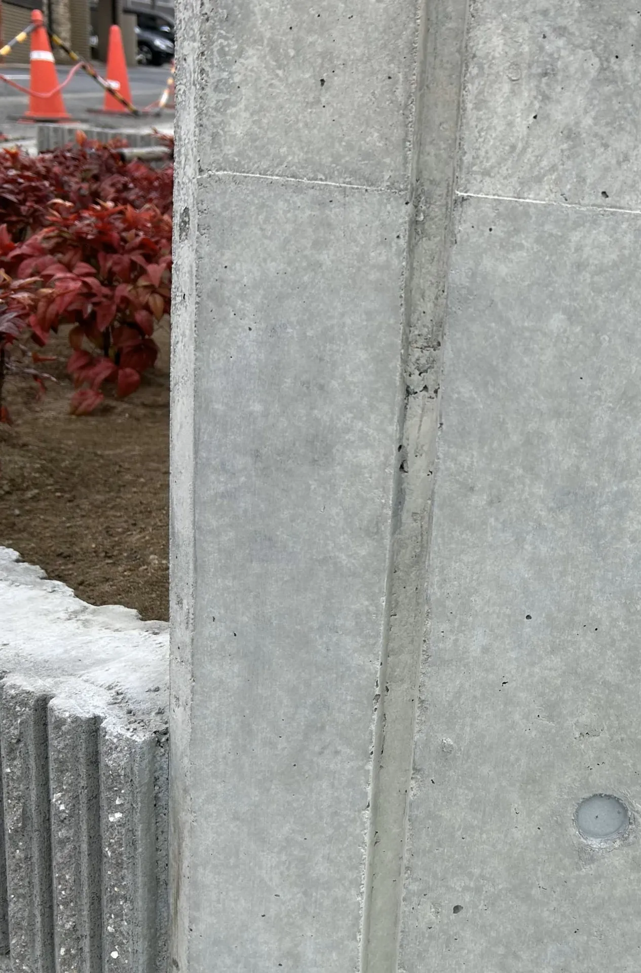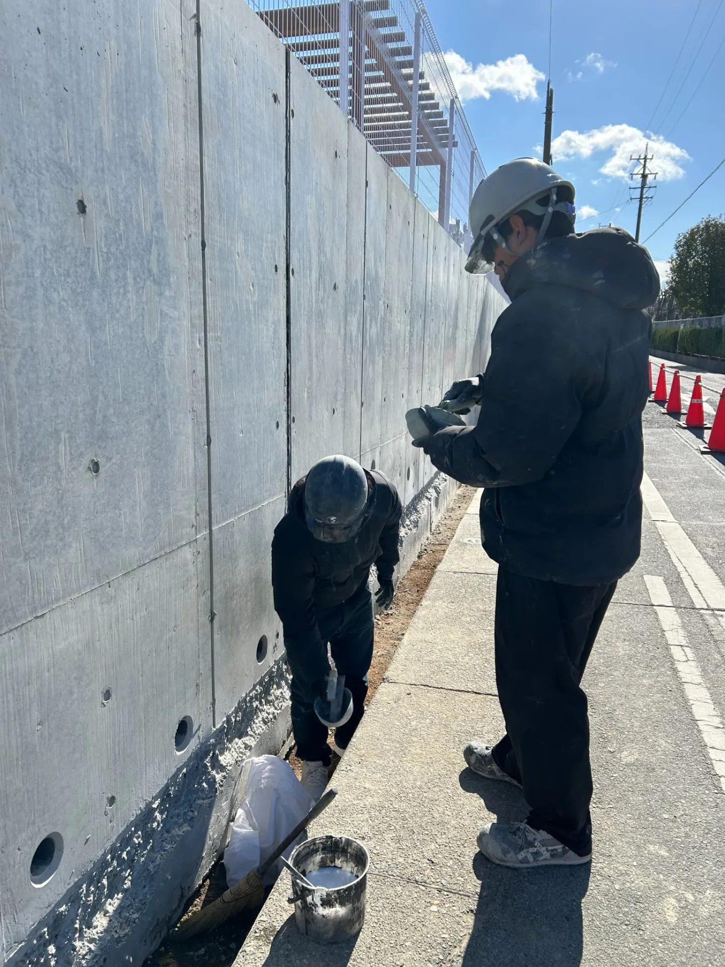 今回の現場は施設のコンクリート擁壁のジャンカ補修と美装です。通りに面した場所であることから、美観と耐久性の両面を改善することが目的でした。