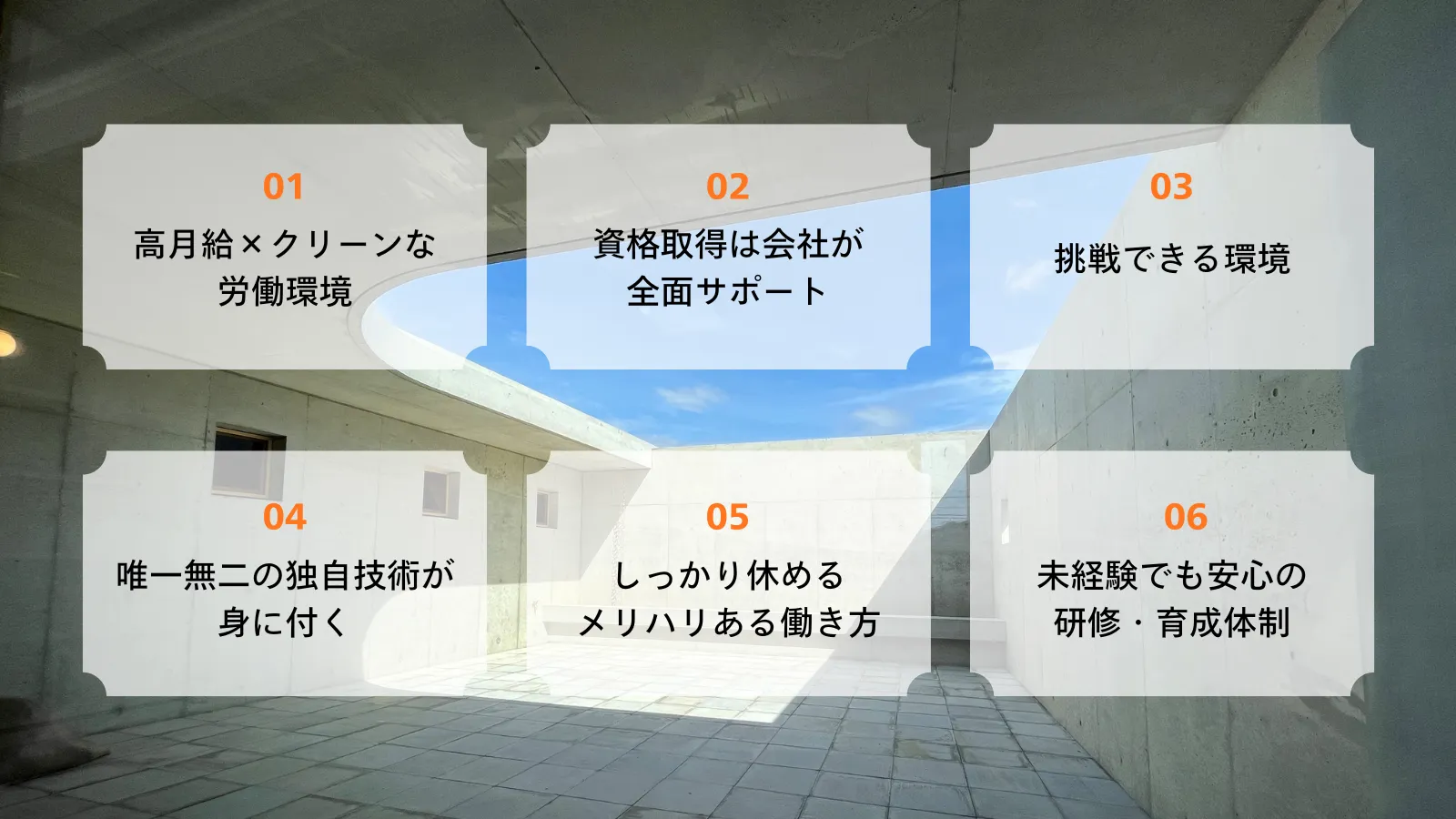 コンクリート補修や仕上げにおいては、独自の技術と高い再現性を強みとし、品質に妥協しない施工を行っています。